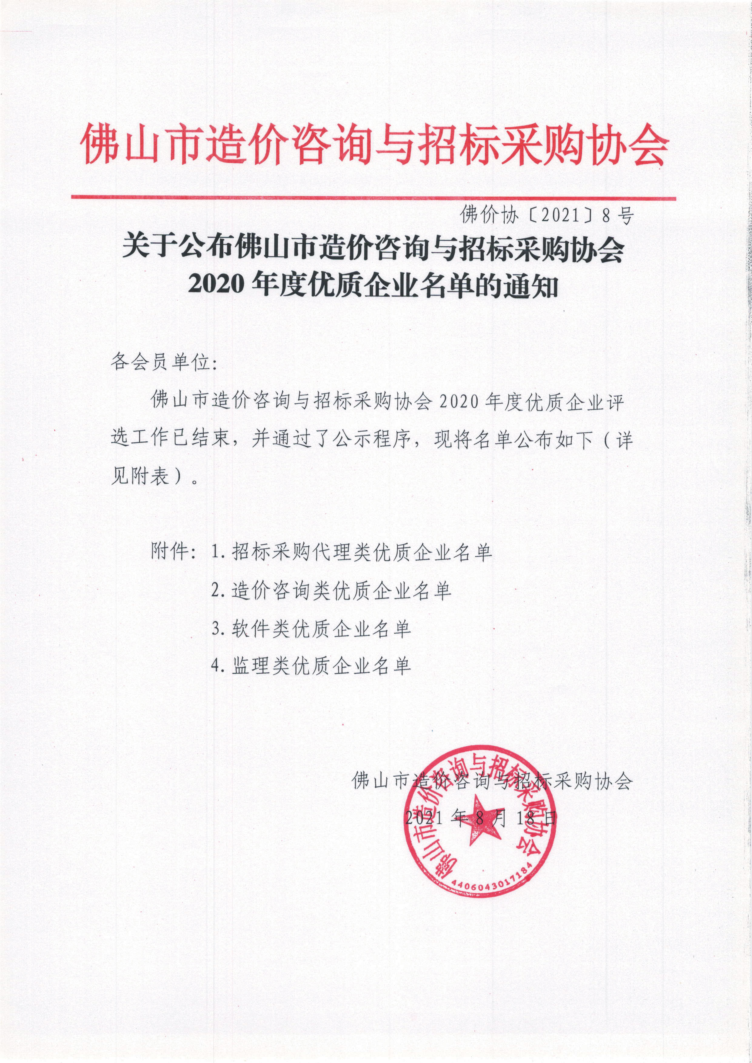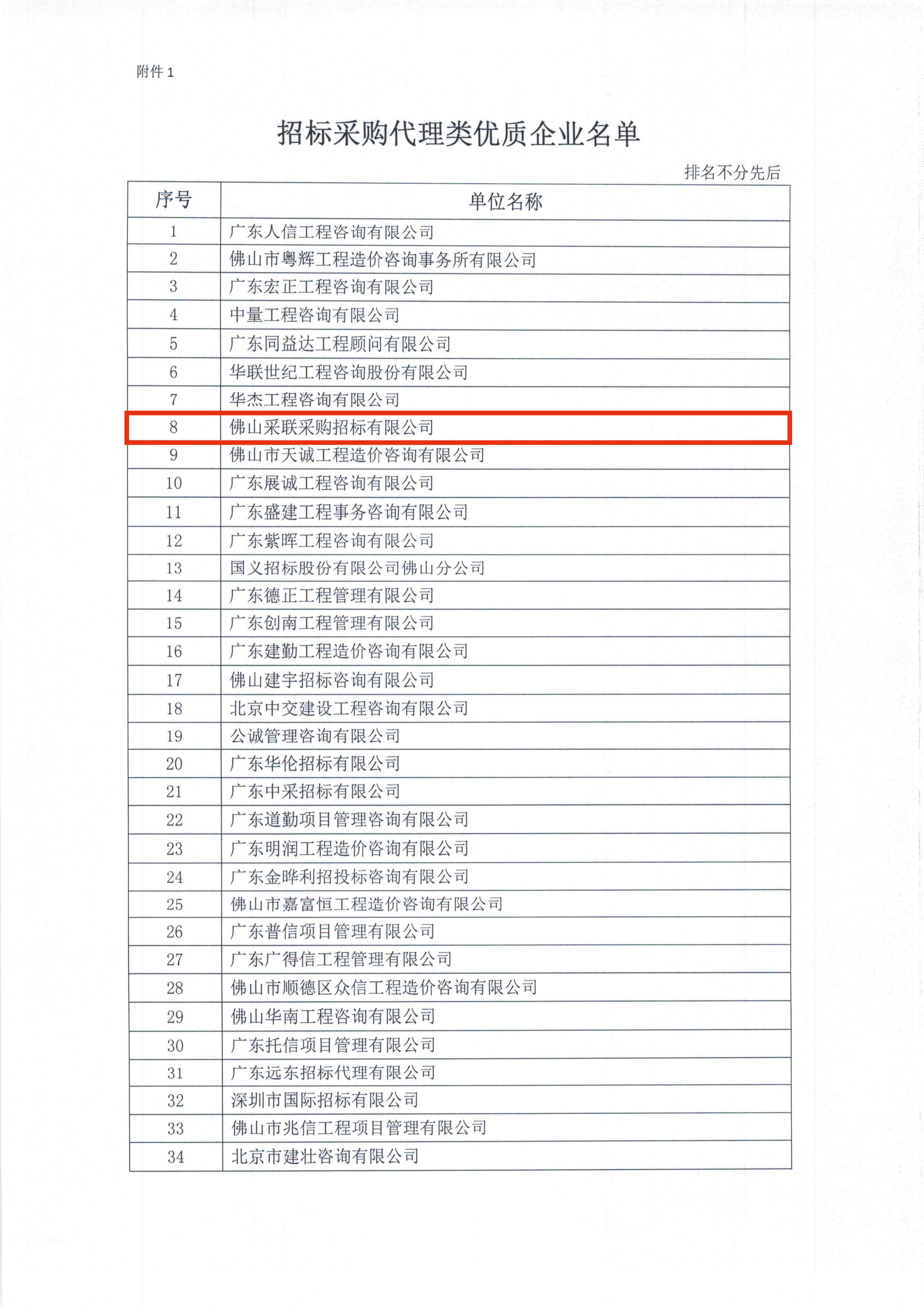 2021年8月18日,佛山市造價咨詢與招標采購協(xié)會發(fā)布《關于公布佛山市造價咨詢與招標采購協(xié)會2020年度優(yōu)質(zhì)企業(yè)名單的通知》。經(jīng)過協(xié)會嚴格的甄選與全面的審查,佛山采聯(lián)采購招標有限公司(以下稱“采聯(lián)集團佛山子公司”)成功入選招標采購代理類“2020年度優(yōu)質(zhì)企業(yè)”名單。