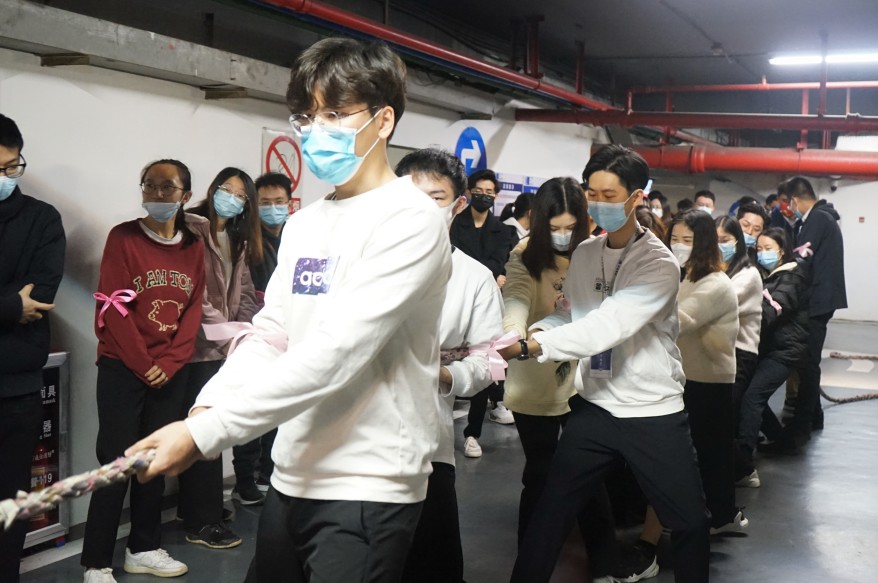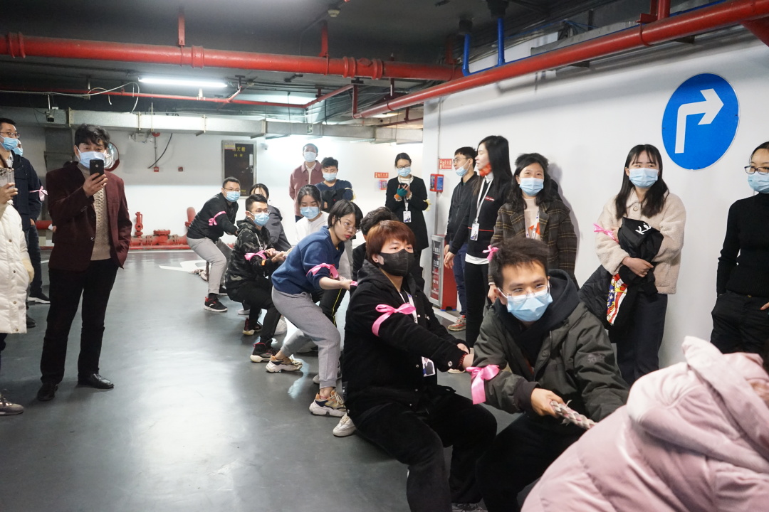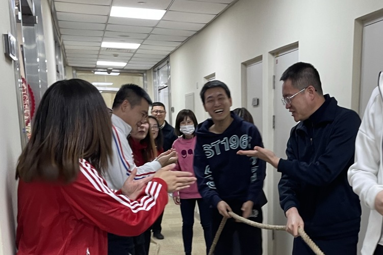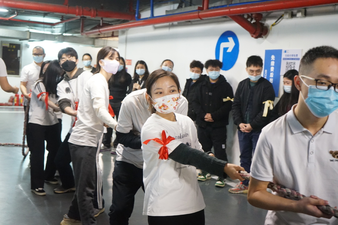 再觀北京分會場,參賽職員身穿中國紅運動服,寓意新的一年紅紅火火,同時也為冬奧會加油助威。現場由飛虎隊和龍騰虎躍隊進行回合制的拔河競賽。在每一回合結束后,雙方進行了認真的戰術討論和調整,經過激烈的比拼,最終龍騰虎躍隊稍勝一籌,在“一二、一二”的號子聲中,取得了比賽的勝利。