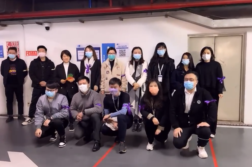參賽職員隨機分為八支參賽隊,并佩戴不同顏色的絲帶作為隊伍標識,一一展示了各隊的隊名和口號。